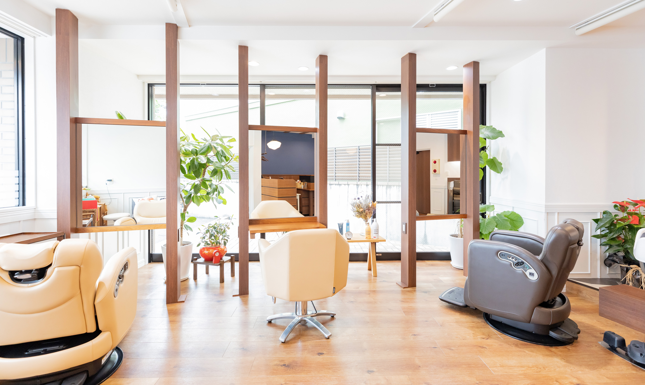 シャンプーや薬剤、トリートメントなど、こだわりの商品を使用。出来るだけダメージの少ないスタイル作りを心がけています。髪、お肌はもちろん、心にも優しく癒やされるメニューをご用意しております。